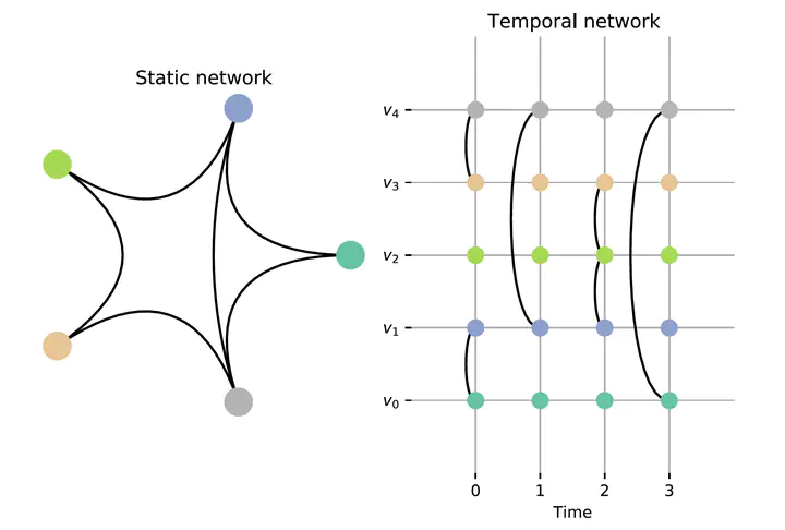 time stamped interactions aggregated into static networks (credit A. Funel, 2021)